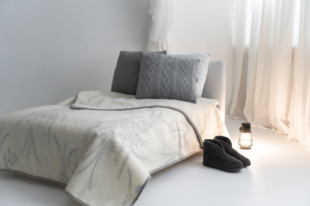 Kevyt ja ilmava peite laadukasta supersoft- merinovillaa. Peite on vaalea ja siinä on hento harmaansävyinen kuvio. Tästä peitteestä on vaihtoehtoina pieni torkkupeite 120*150 cm sekä normaalikokoinen yhden hengen peite, joka sopii myös päiväpeitteeksi kapeaan sänkyyn, koko 140*200 cm.